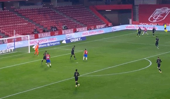 47'巴萨进攻受阻,蒙托罗起大脚直接发动反击,索尔达多单刀破门,格拉纳达2-0巴萨!